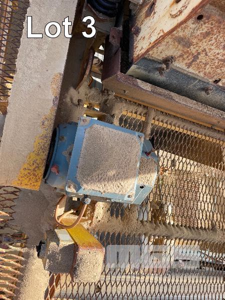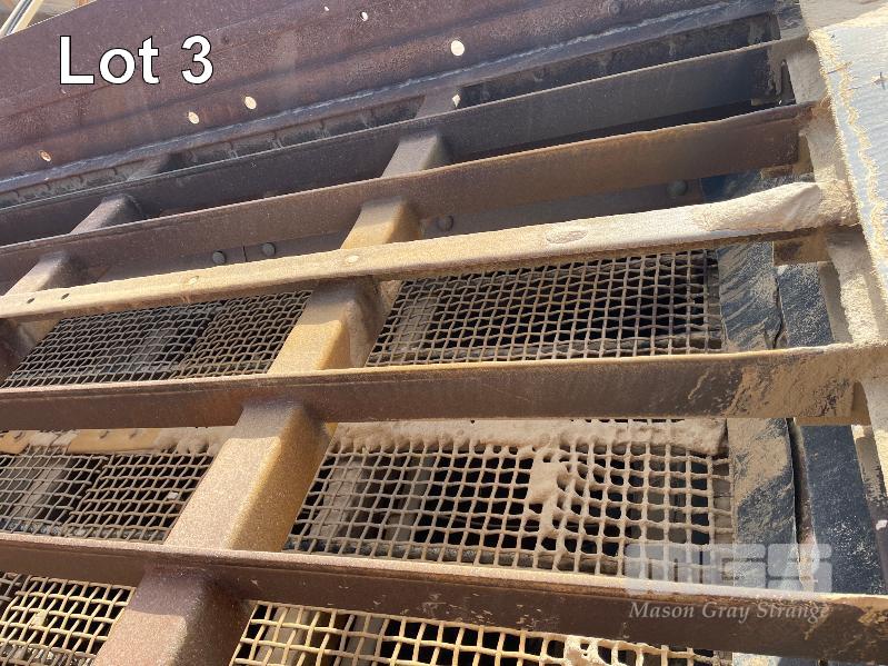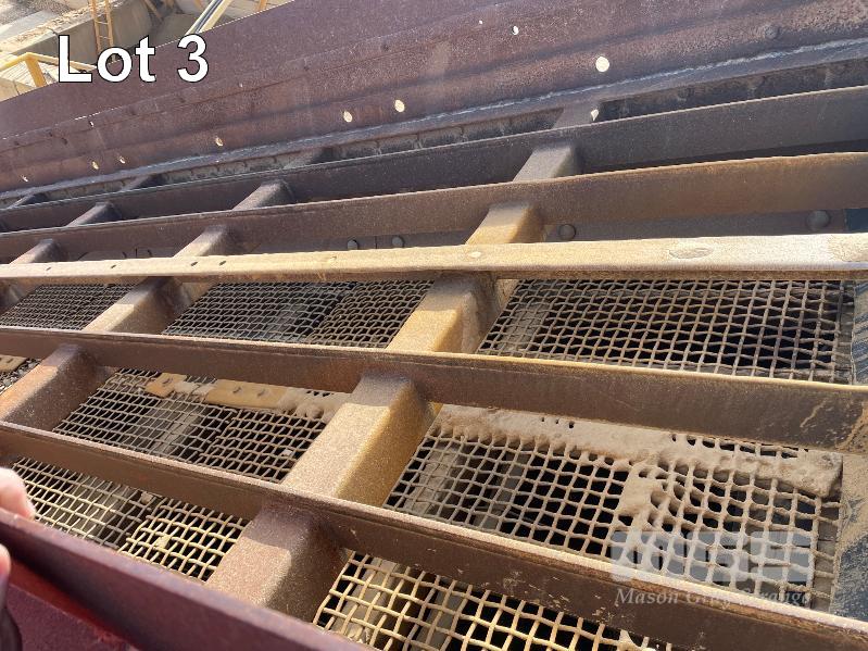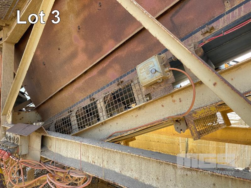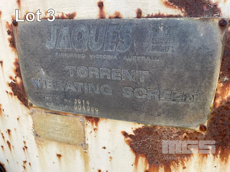 JAQUES TRIPLE DECK SCREEN, 14 FT X 5 FT, INCLINE TYPE MODEL 3514 SNO, 604686 BELT DRIVE 415 VOLT, WITH SUPPORT STRUCTURE, ACCESS STEPS AND WALK WAY ALSO TO INCLUDE BOTTOM DISCHARGE CONVEYOR