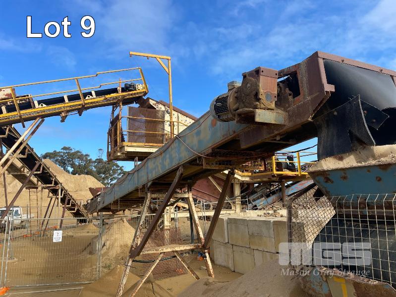 QUAMIN TRANSFER CONVEYOR 10 METER X 600 MM WIDE BELT WITH SUPPORT LEGS
