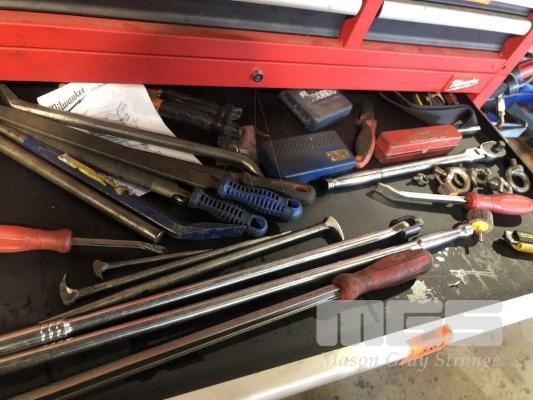 ASSORTED BREAKER BARS, LONG PINCH BARS, FILES, IMPACT DRIVER, LARGE SHAFT SCREWDRIVERS, DRIVE BITS, RATCHET WRENCH CONTENTS 1 x DRAWER