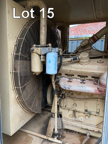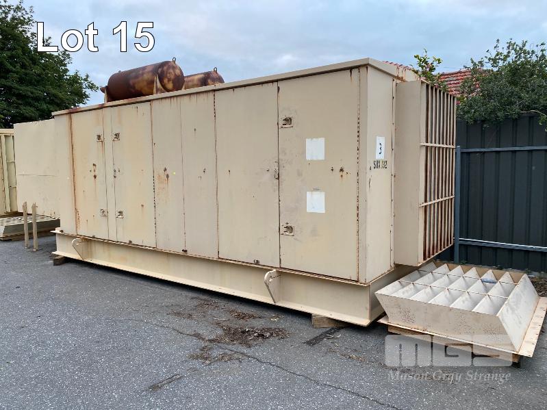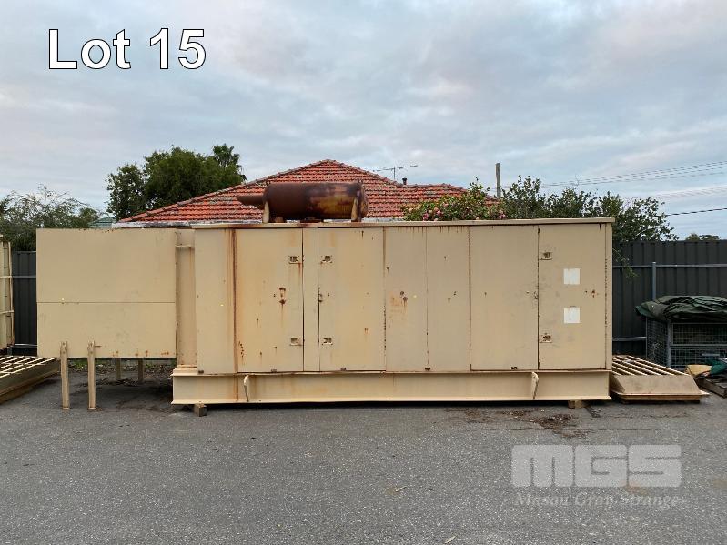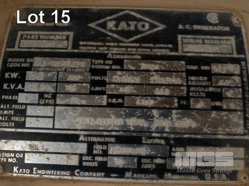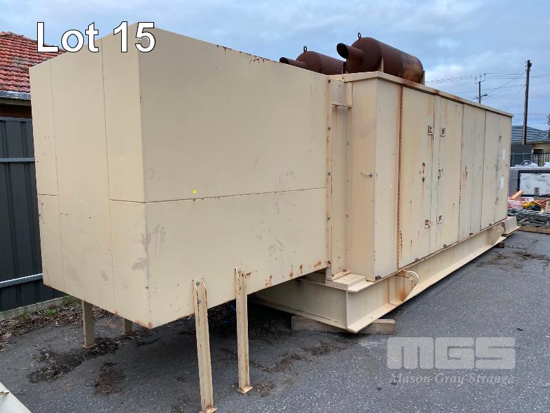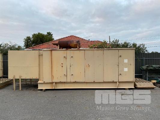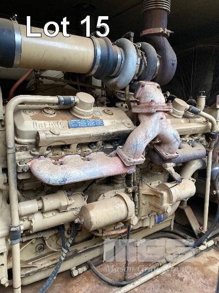 PACKAGED GENSET, 1980 DETROIT MOD: SK-92T-500 OUTPUT: 500kw POWER FACTOR 0.8 (625 KVA) HOURS: 875 SHOWING POWERED BY DETROIT V16 TURBO DIESEL ENGINE MOD: 81637305 S/NO: 16VF003768 WITH KATO ALTERNATOR MOD: 531-493351111 CONTINUOUS OUTPUT: 513kw (641 KVA) VOLTS: 415-240 3 PHASE AMPS: 868 S/NO: 1763 WEIGHT: 13,000kg APPROX