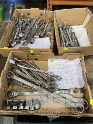 ASSORTED AF & METRIC SPANNERS, RING/COMBO, INCLUDING SNAP ON & SIDCHROME, 1/2" DRIVE SOCKETS, ETC, 3 x BOXES