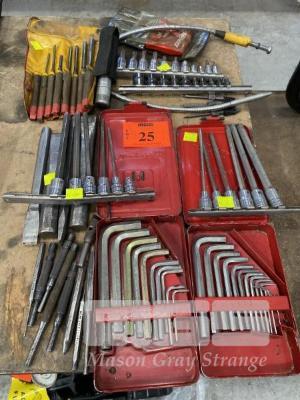 2 x SNAP ON ALLEN KEY SETS, 2 x HEX DRIVE SETS, STAR DRIVE SETS, PUNCHES, CHISELS, ETC