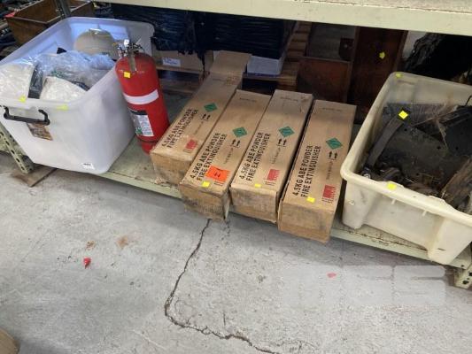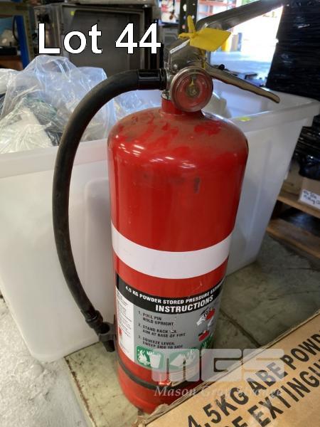 5 x FIRE EXTINGUISHERS, 4.5Kg DRY POWDER WITH MOUNTING BRACKETS & 6 x HARD HATS