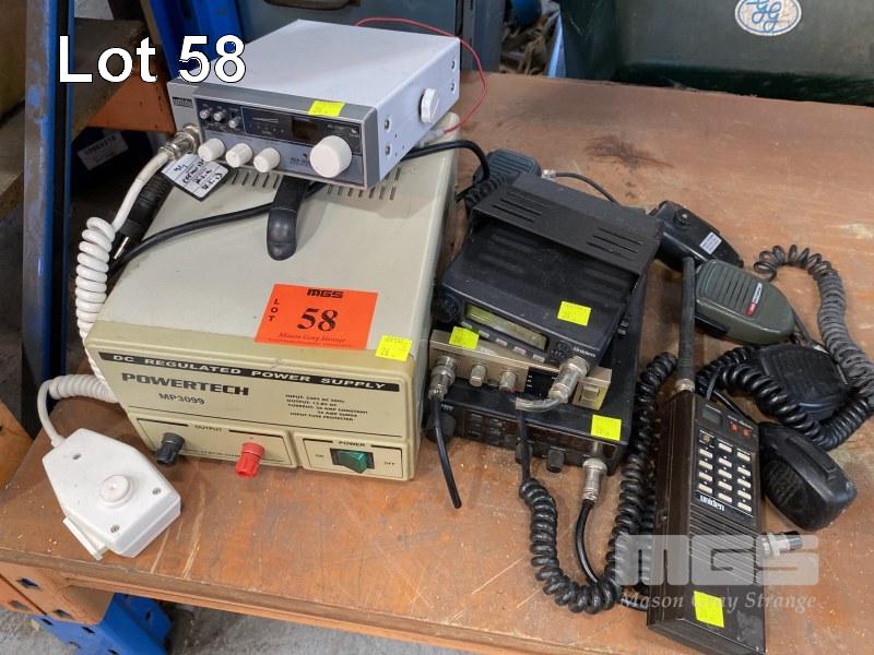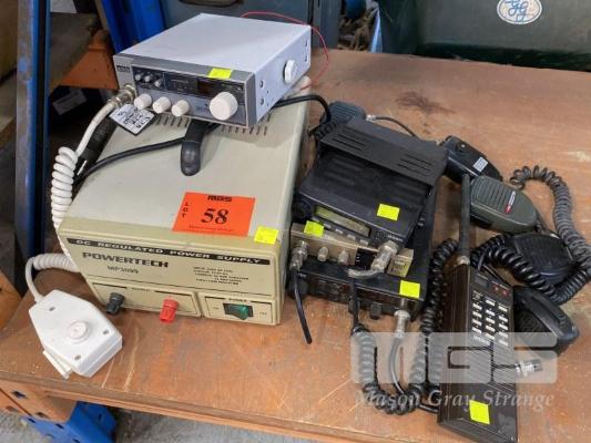 2 WAY RADIOS INCLUDING UNIDEN SEA DOLPHIN, ELECTROPHONE TXB20, UNIDEN UN-089UNF, BASE STATION & HAND HELDS WITH POWERTECH DC REGULATED POWER SUPPLY