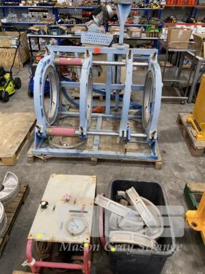 POLY BUTT WELDING MACHINE, ZHUJU HUIDA PIPE TECH COMPRISING : HYDRAULIC PIPE CRADLE/PRESS, 600mm DIAMETER ELECTRO HYDRAULIC POWER PACK, CONTROLLER & CABLES TO SUIT, ELECTRIC FACING TOOL 645mm DIA. & HEAT PLATE 650mm DIA. WITH CARRY CRADLE