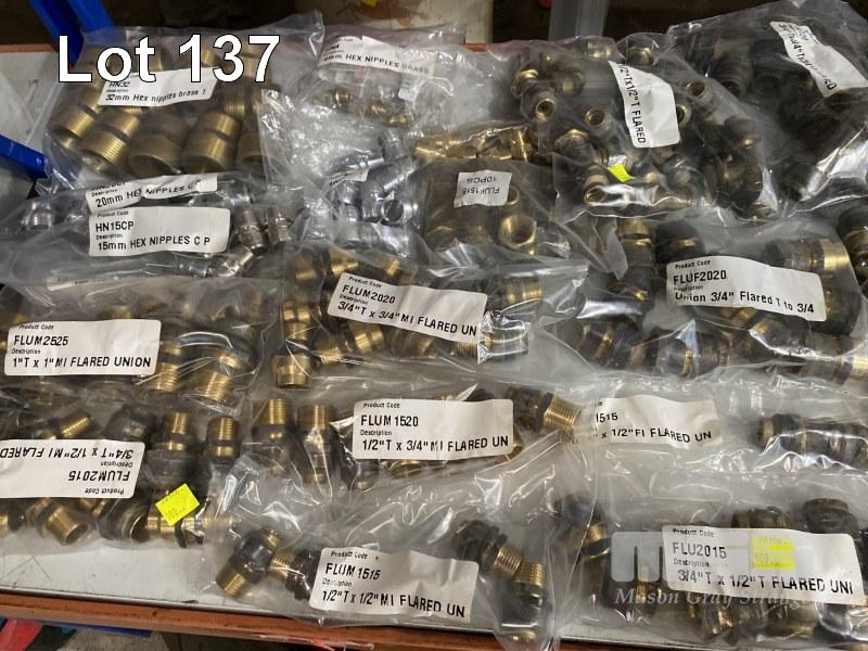 ASSORTED BRASS FITTINGS INC FLARED UNIONS, 1" TO 1/2",