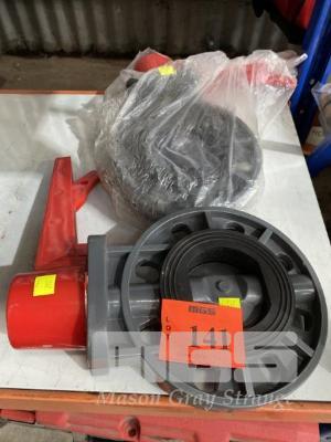2 x BUTTERFLY VALVES, 3", POLY, WAFER TYPE