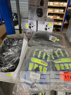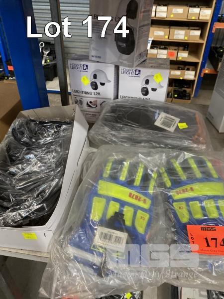 2 x PAIRS RIGGERS GLOVES, HI VIS, TEF-LOC, WATERPROOF, XL, 12 x PAIRS PRO SENSE MAXI PRO 270 GLOVES, SIZE 6, 12 x PAIRS UVEX SAFETY GLASS FRAMES, PHE05 & 3 x PAIRS HARD HAT EAR MUFFS, HOWARD LEIGHTNING L2H, AS NEW