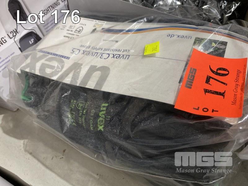 12 x PAIRS PRO SENSE MAXI PRO 270 GLOVES, SIZE 6, 10 x PAIRS CUT RESISTANT SAFETY GLOVES, UVEX C3 FOAM, SIZE 11, 12 x PAIRS UVEX SAFETY GLASS FRAMES, PHE05 & 3 x PAIRS HARD HAT EAR MUFFS, HOWARD LEIGHTNING L2H, AS NEW