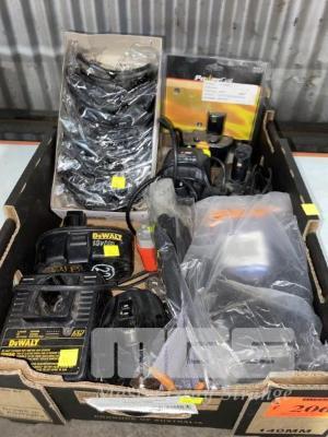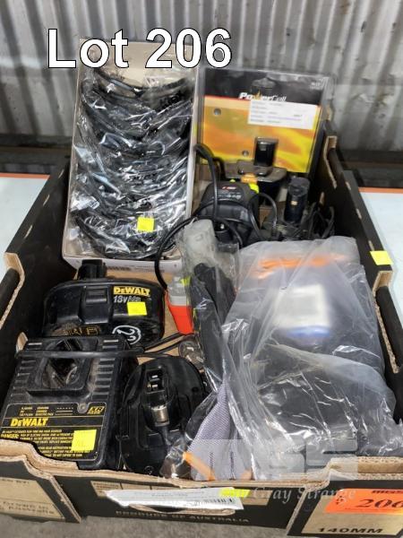 ASSORTED CORDLESS TOOL BATTERIES & CHARGERS INC DEWALT, ICON, MAKITA, B&D, ETC, 12 x PAIRS SAFETY GLASSES, UGLY FISH, CLEAR POLYCARB & 12 x PAIRS SAFETY GLOVES,PRO SENSE MAXIPRO, SIZE 6