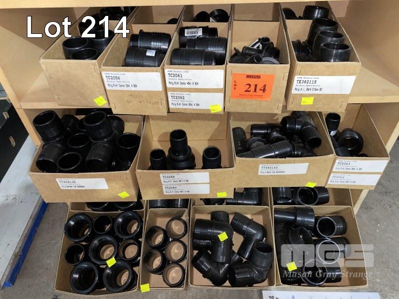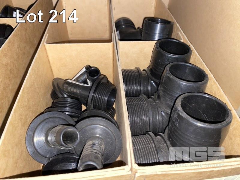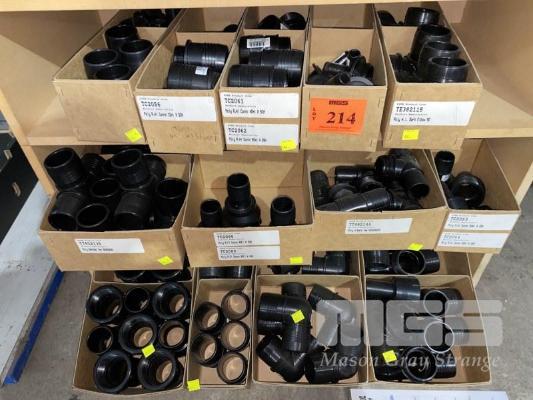 DIESEL/CHEMICAL RESISTANT PIPE FITTINGS, VULTREX, POLYPROPYLENE HOSE FITTINGS INCLUDING THREADED/BARBED JOINERS & CONNECTORS, ELBOWS, TEES, ETC SIZES INC: 25, 32, 40 & 50mm IN 13 x CARDBOARD DRAWERS 3 x BOTTOM SHELVES INCLUDING SHELF UNIT