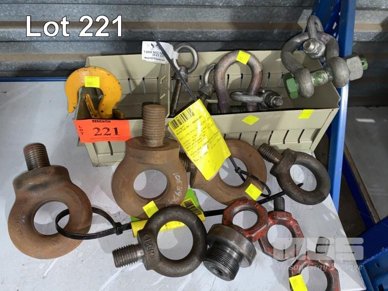 EYE BOLT LIFTING LUGS INC 3 x M80, 2 x M24, 3 x M16, ASSORTED HOOKS & BOW SHACKLES