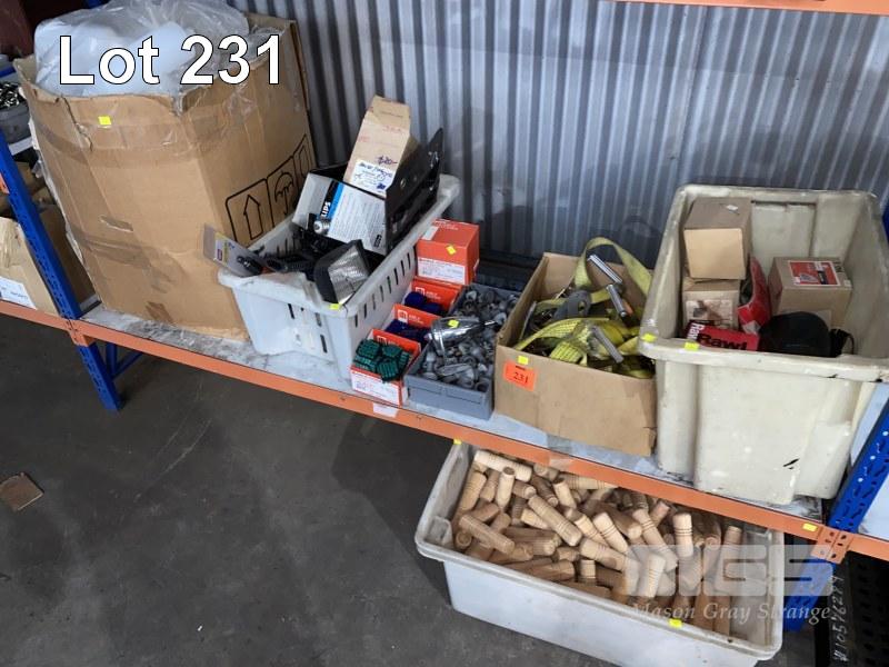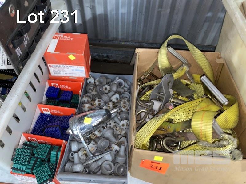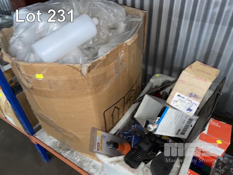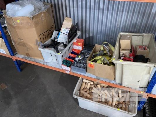 AUTOMOTIVE LIGHTS & PARTS, RATCHET STRAPS, 240V PLUGS, WALL PLUGS, HOSE FITTINGS & NOZZLES, PVC BOTTLES, 1 LITRE CAPACITY & WOODEN HANDLES, ETC,