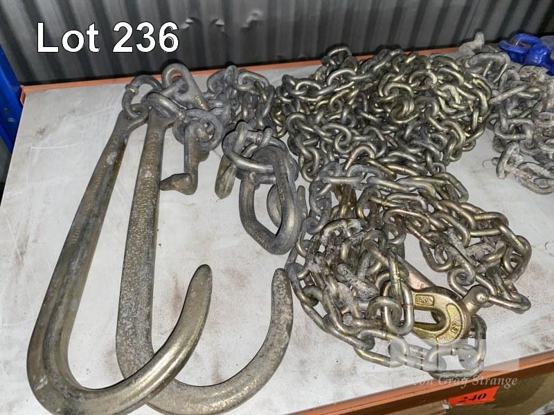 2 x CHAIN DOGS, VEHICLE RECOVERY HOOKS & CHAIN ASSEMBLIES, ETC