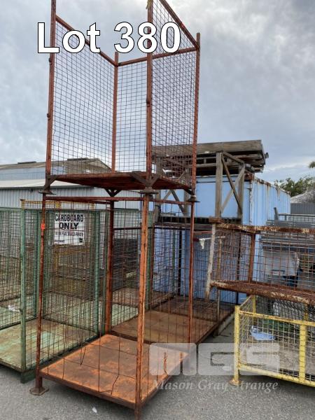 4 x STEEL MESH STILLAGES, ORANGE, 1050 x 1050 x 1500mm (H)