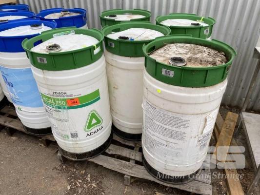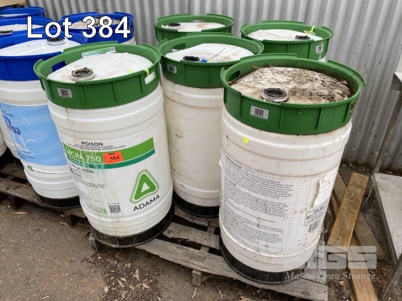 5 x 110 LITRE POLY DRUMS, GREEN TOP, (CONTAINED HERBICIDE)