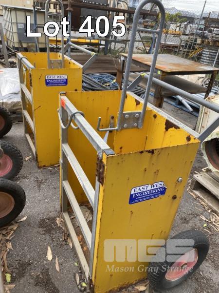 2 x GAS CYLINDER SAFETY LIFTING TROLLEYS, EAST WEST ENG