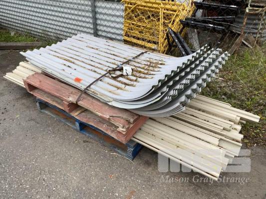 16 x SHEETS BULLNOSE ROOF SHEETS, GREEN CORO, 835 x 1650mm & FENCE POSTS/RAILS, CREAM STEEL, 2400mm, 1 x PACK