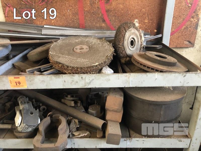 ASSORTED BROACH TOOLING, GRINDING STONES, BUFFS & SPANNERS, CONTENTS RACK