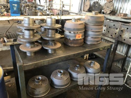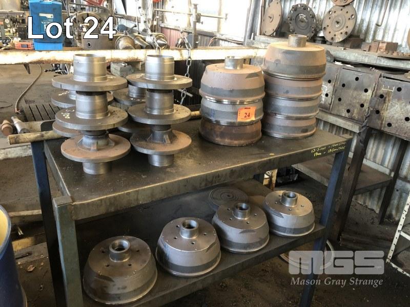 11 x TREG BRAKE DRUMS & 10 x HUBS, SUIT TRAILERS WITH 2 TIER STEEL RACK
