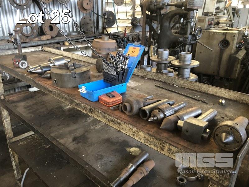 200mm 3 JAW LATHE CHUCK, 3 x LIVE CENTRES, 3 x DEAD CENTRES, DRILL SET & REDUCTION SLEEVES