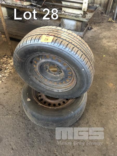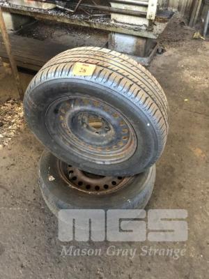 PAIR 5 STUD STEEL RIMS & TYRES, SUIT TRAILER