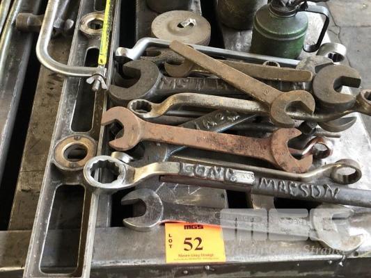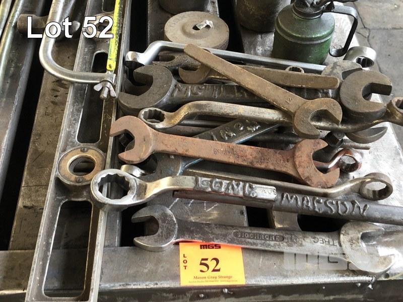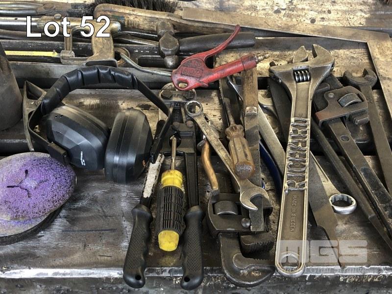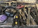 ASSORTED TOOLS INC LEVEL, SPANNERS, OIL CANS, DISCS, EAR PROTECTION, STILSONS, SHIFTERS & PIPE WRENCH