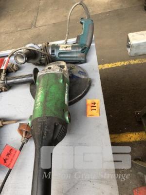 ANGLE GRINDER, HITACHI, 9", 240V & MAKITA HAND DRILL, 13mm REVERSIBLE