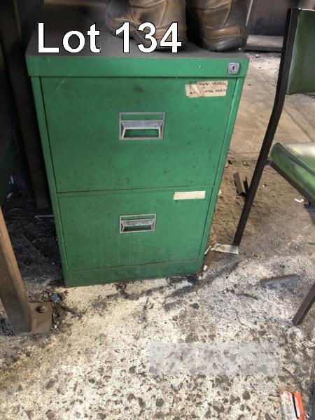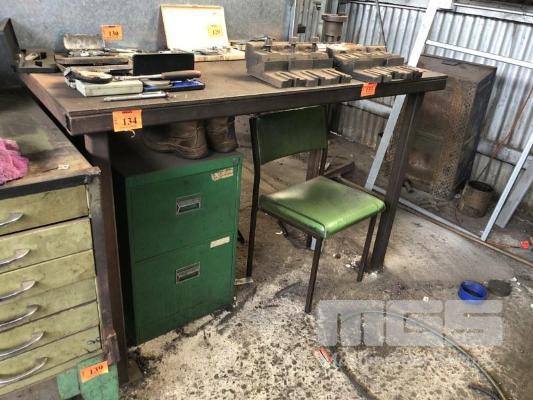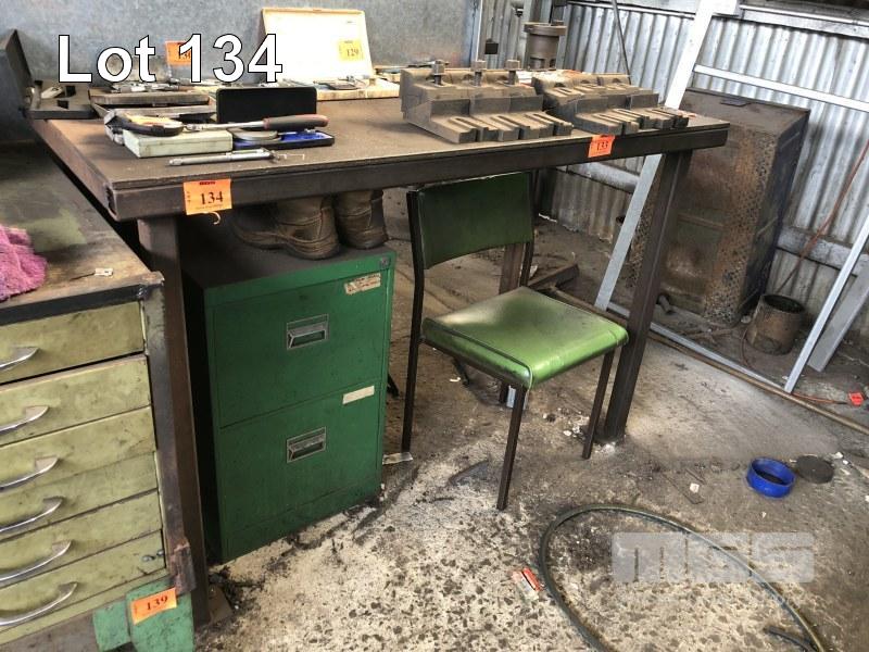 STEEL WORK BENCH, PLATE TOP, 1500 x 700 x 12mm THICK & 2 DRAWER STEEL FILING CABINET