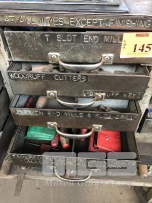 WOODRUFF CUTTERS, LATHE TOOL TOPS, HEX KEYS, ETC CONTENTS 4 x DRAWERS