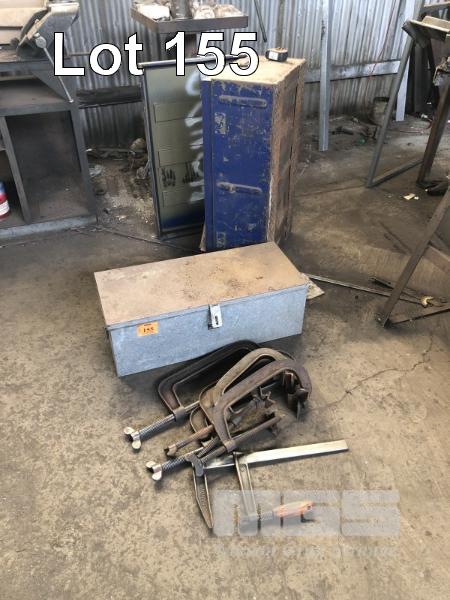 2 x TOOL BOX, 5 x LARGE G-CLAMPS, UP TO 12" & 1 x LARGE F-CLAMP, 15"