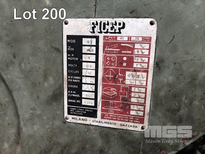 PUNCH & SHEAR, FICEP MOD: S1 S/NO: 5350 29 TONNE 4HP, 415V CUT 4 1/2 x 3 1/2" ANGLE 1 3/4" ROUND 1 9/16" SQUARE PUNCH 1 1/16" x 5/8" HOLE WITH INFEED ROLLERS
