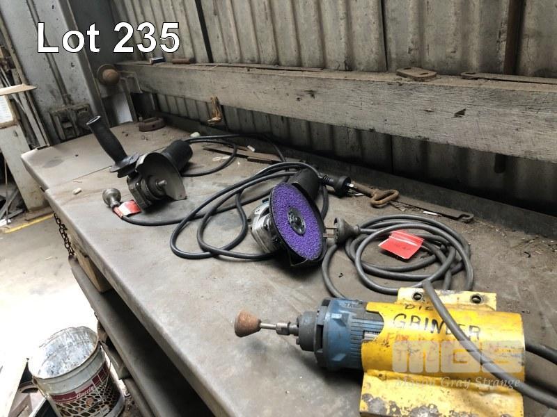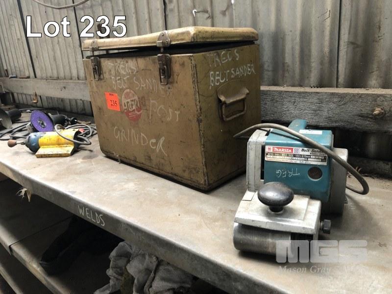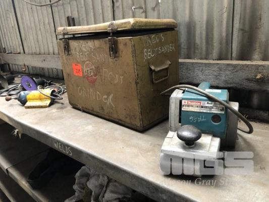 MAKITA DIE GRINDER, 2 x ANGLE GRINDERS, 100mm BELT SANDER WITH CARRY CASE