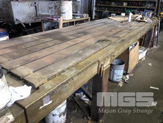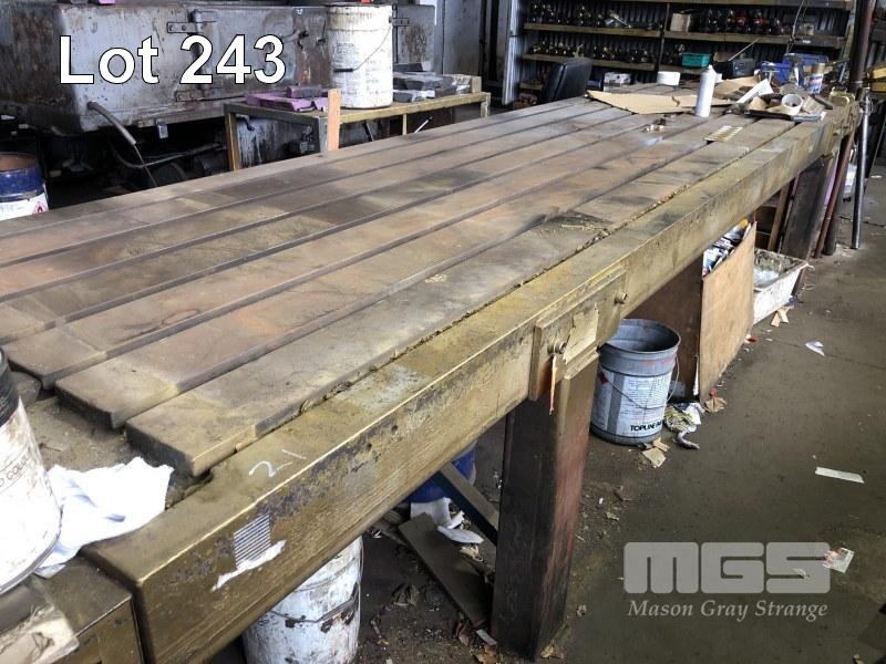 LARGE CAST IRON TEE SLOTTED SET UP BENCH, 15 x 4' WITH FABRICATED LEGS