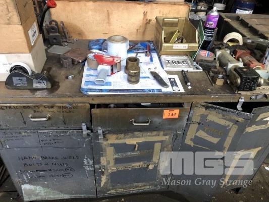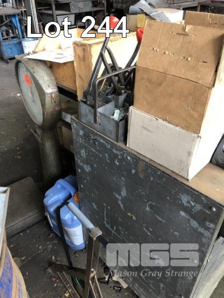 PACKING BENCH, INCLUDES STRAPPER & TOOLS, CLIPS, CRADLE, TAPE GUNS, ETC