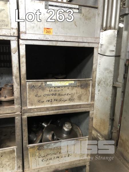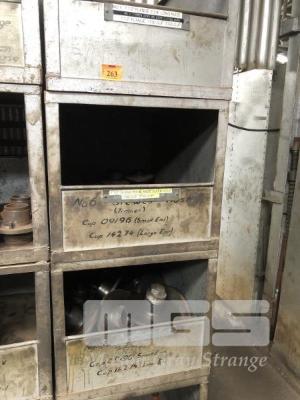 4 x STEEL PARTS BINS, 100 x 700 x 600mm & CONTENTS TRAILER HUBS & DISCS