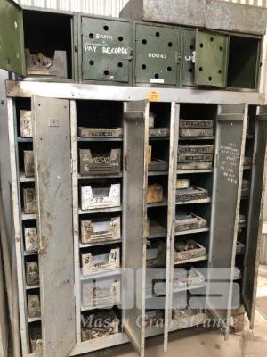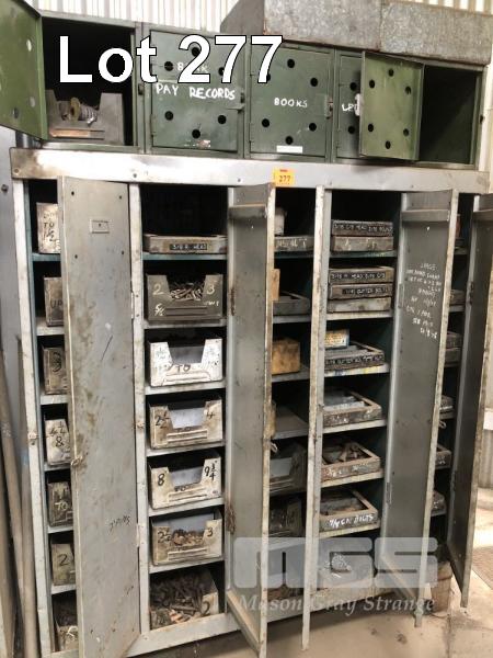 ASSORTED HARDWARE INC NUTS, BOLTS, CAP HEAD BOLTS, CS HEAD SCREWS, TRAILER TAIL GATE LATCHES, METAL SCREWS, 35 x SHELVES, INCLUDES RACK