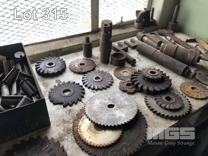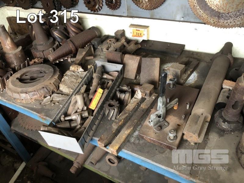 LARGE QUANTITY MILLING CUTTERS, FACE CUTTERS, TOOL HOLDERS,ETC, CONTENTS 2 x BENCHES, INCLUDES DRAWER SET & CONTENTS