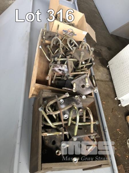 2 x STEEL STORAGE RACKS & CONTENTS & 2 x CRATES U-BOLTS & PLATES