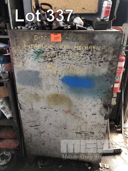STEEL STOCK CUPBOARD & CONTENTS ASSORTED TRAILER HUBS & BRAKE COMPONENTS