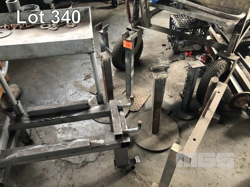 6 x WORK STANDS, SMALL TROLLEY & LIFT JIG