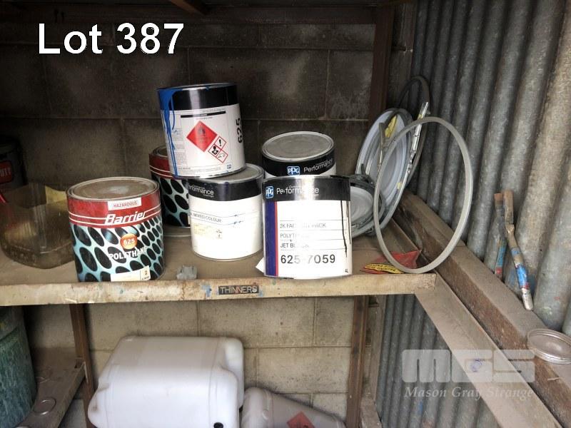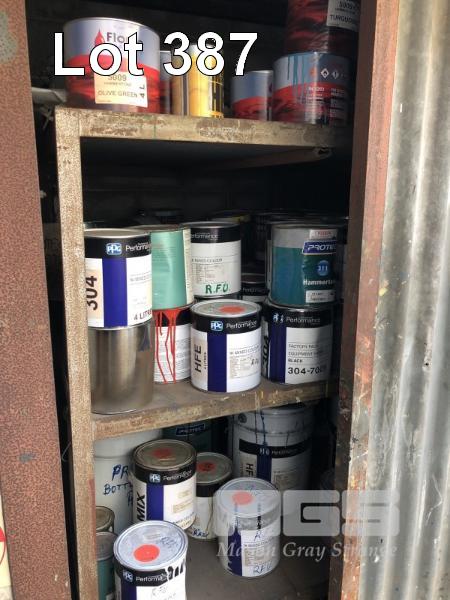FLAMMABLES SHED CONTENTS, GUN WASH, PAINTS, PROTEC, PPG, FLORITE, SOLVER APPROX 100 TINS
