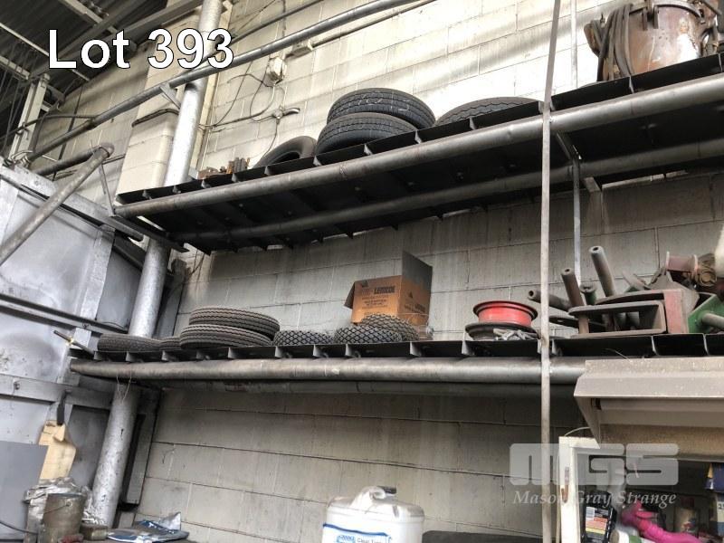 SMALL PNEUMATIC WHEELS, 2 x PRESSURE POTS, VARIOUS SPARE TYRES & HARDWARE, CONTENTS RACK