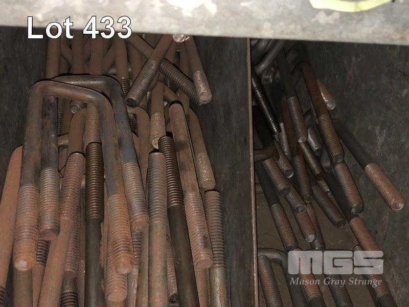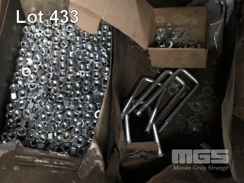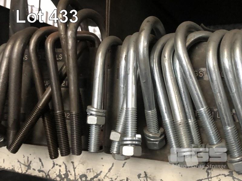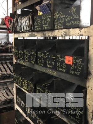 LARGE QUANTITY U-BOLTS & PLATES, HEX HUB & BEARINGS, WITH RACK, 2000 x 1320 x 620mm