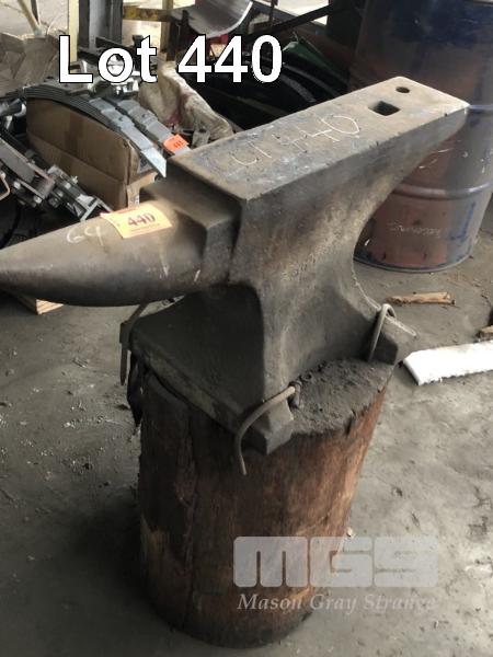 BLACKSMITHS ANVIL ON TIMBER LOG STAND