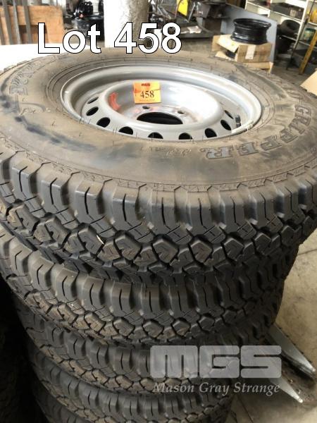 SET 6 STEEL WHEELS, 16" 5 STUD WITH NEW DUNLOP ROAD GRIPPER TYRES