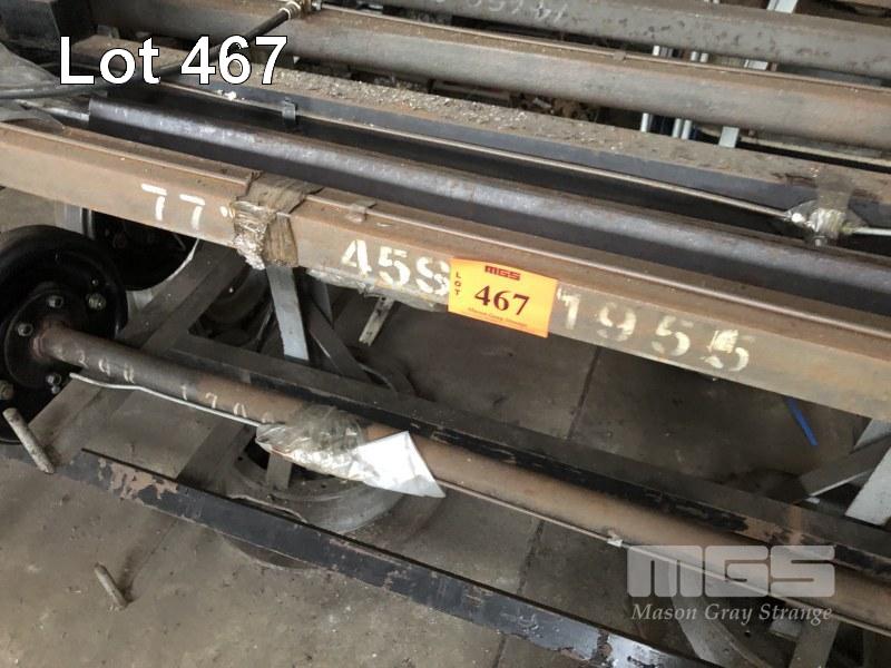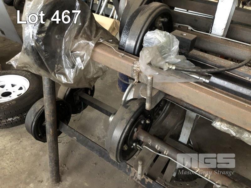 8 x TRAILER AXLES INC 2 x ROUND 66" WITH BRAKES 6 x SQUARE WITH BRAKES, 77", 41", 59", 67", 95"