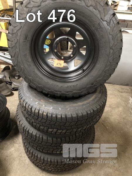4 x BLAK TRACK RIMS, NEW, 16x8" WITH USED TYRES
