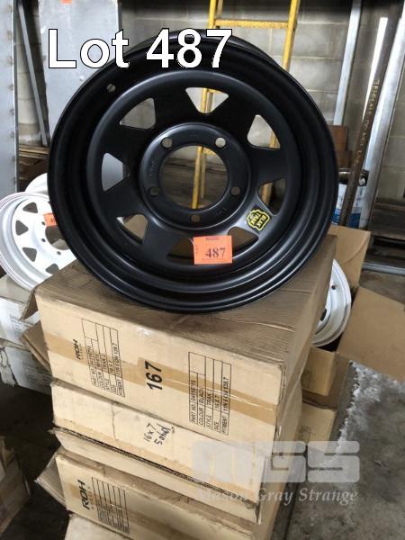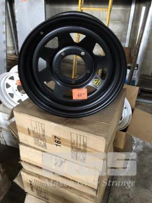 5 x 5 STUD BLAK TRACK RIMS, NEW, 15x7"
