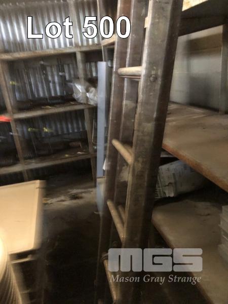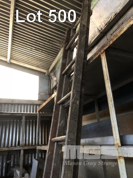 2 x STEEL STOCK ACCESS LADDERS & 1 x ORNAMENTAL WOOD EXTENSION LADDER